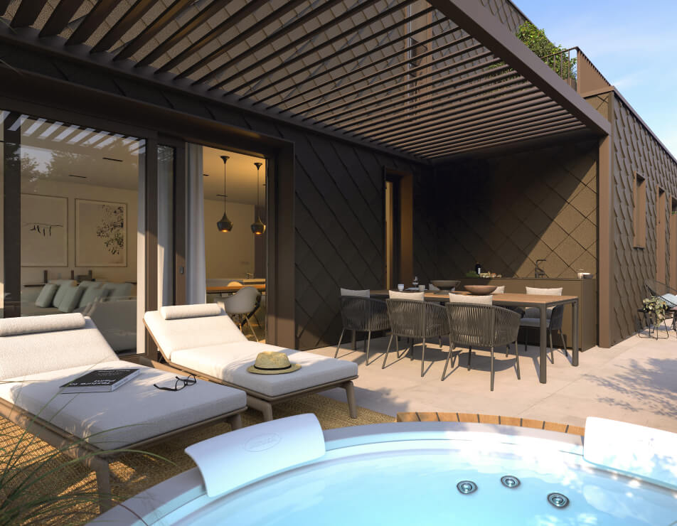 Vsako stanovanje v soseski Pod hribom je oblikovano z mislijo na sodobno življenje – od živahnih družinskih trenutkov do umirjenih, intimnih večerov na lastni terasi, loži ali v atriju. Poseben vrhunec predstavlja 29 terasnih stanovanj v višjih nadstropjih, ki s prostornimi zunanjimi površinami prinašajo občutek popolne svobode.
